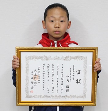 小学生プログラミング県大会、中島さんが最優秀賞 3年連続受賞、大分市で表彰式