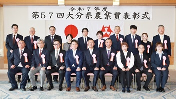 大分県農業賞の表彰式、5農家と6団体をたたえる 受賞者「より一層の努力重ねる」