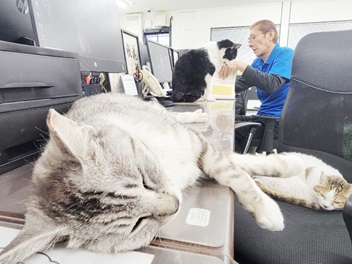 【気まぐれ癒やしの看板猫】大分市の大分浄化衛生工業所 人気の「嵐」動画再生190万回