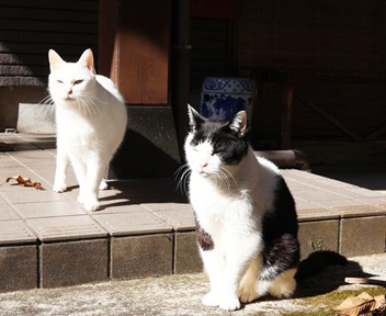 【気まぐれ癒やしの看板猫】由布市の喫茶去cafe動真庵 ランチ客を迎え見送りも