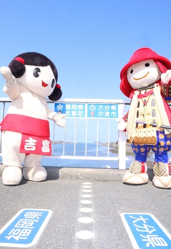 大分と福岡「県またぎ」写真スポット登場 山国川の2橋に県境サイン設置