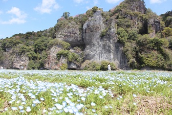 爽やか青いじゅうたん、ネモフィラが見頃 中津市「青の洞門」対岸、12日にはイベントも