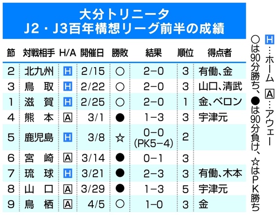 トリニータ、浮き沈みがあった百年構想リーグ前半戦 主力と控えの力量差が浮き彫り