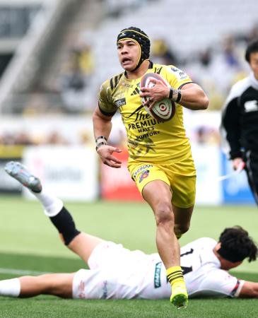 筑波大―帝京大 後半、トライを決める帝京大・ダウナカマカマ(中央)=秩父宮