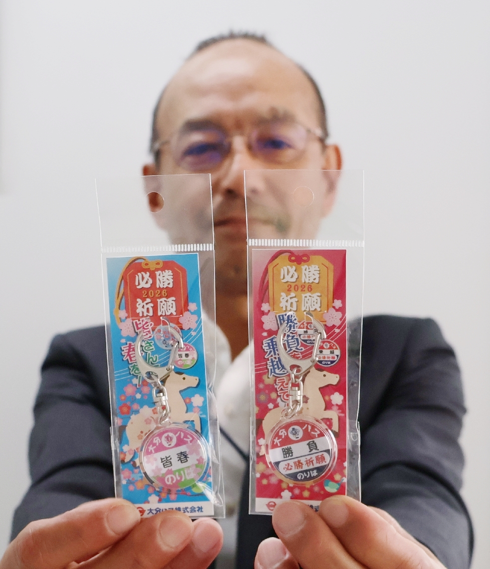 「勝負」を「乗越」、「皆春」に…大分バスが必勝祈願キーホ...
