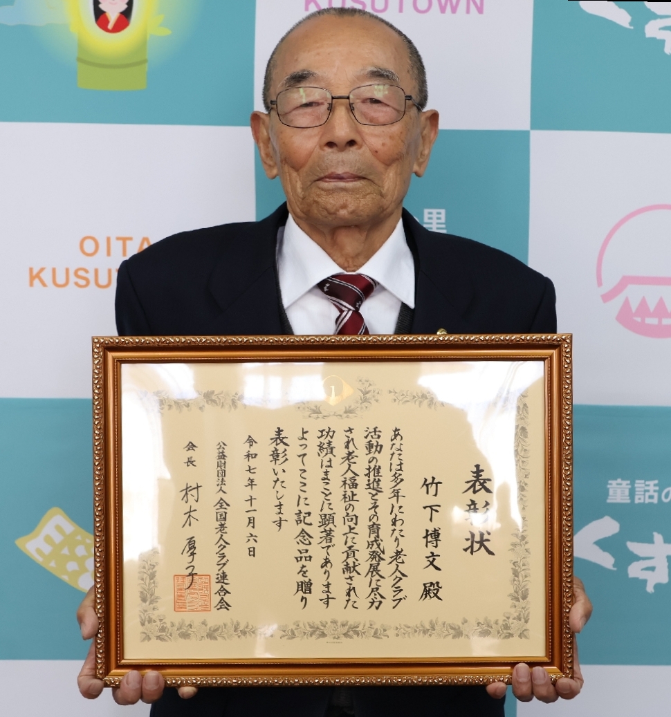 玖珠町の竹下さんに全老連会長表彰老人クラブの育成に功労、...