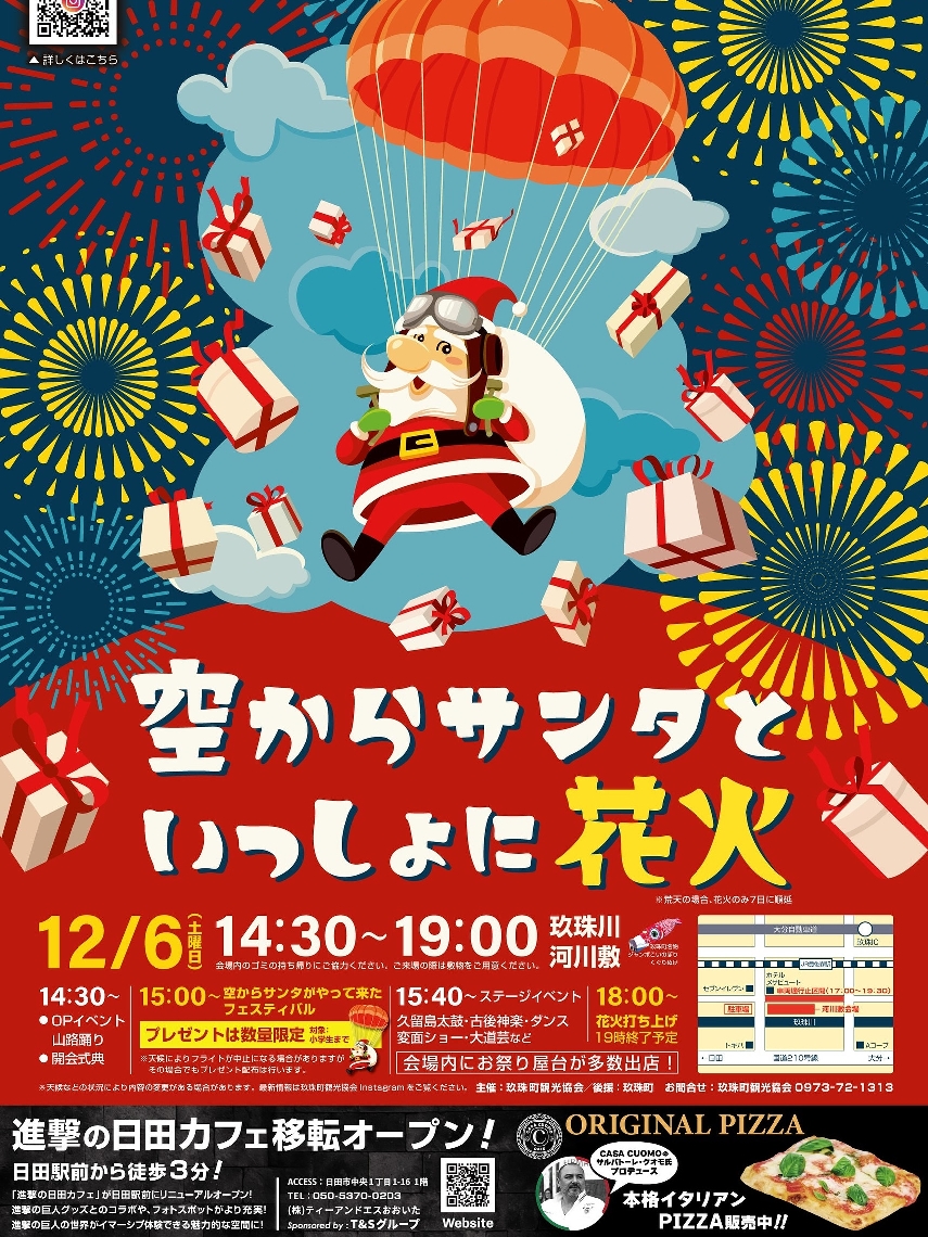 玖珠町で6日、恒例イベント「空からサンタがやってきた」今...
