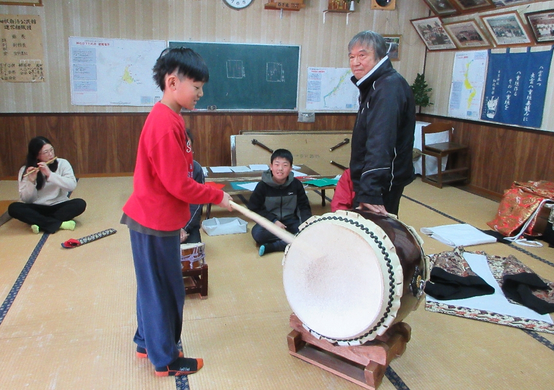 臼杵市の南野津小児童が「細枝神楽」学ぶ地域の伝統芸能「こ...