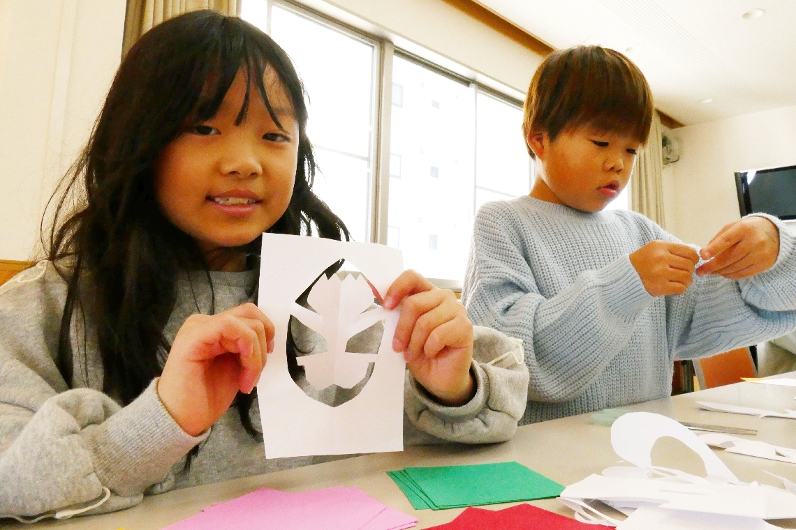 大分市の鶴崎校区公民館で「多世代ふれあい切り絵教室」チュ...