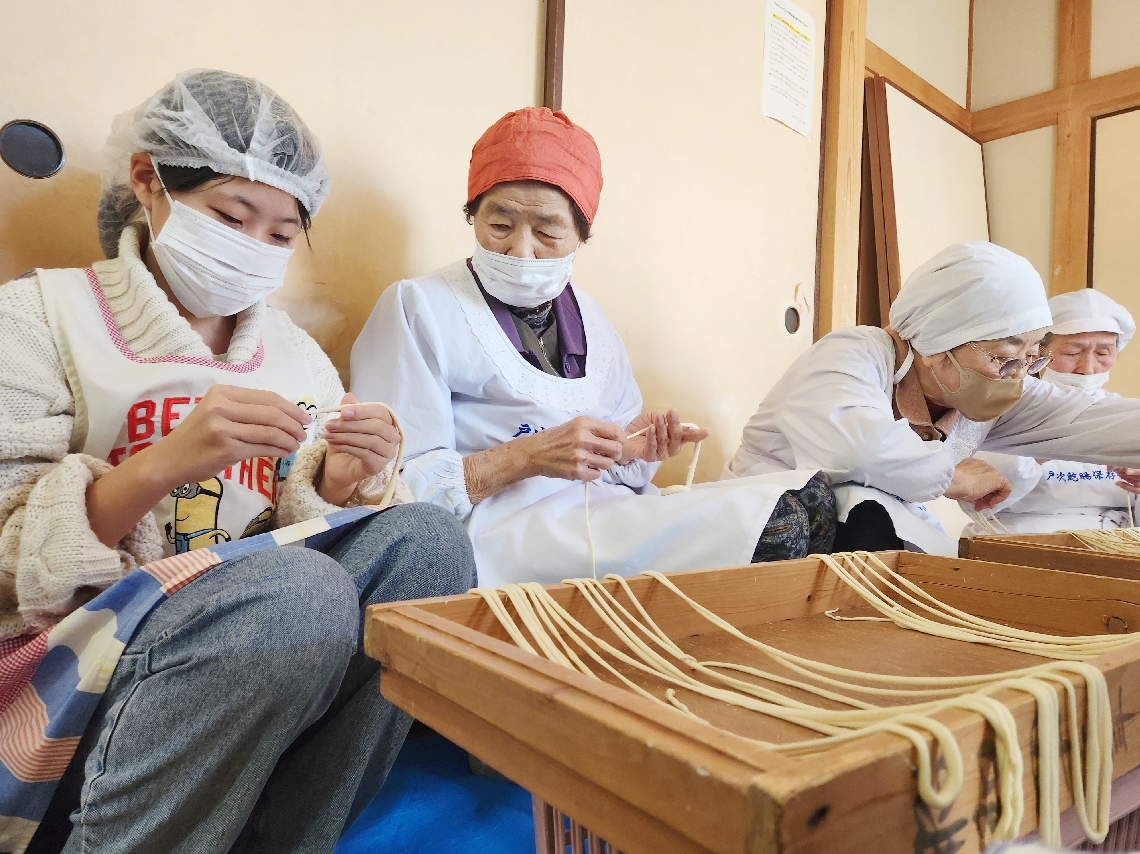 大分市戸次中の生徒ら麺料理「ほうちょう」作り体験保存会「...