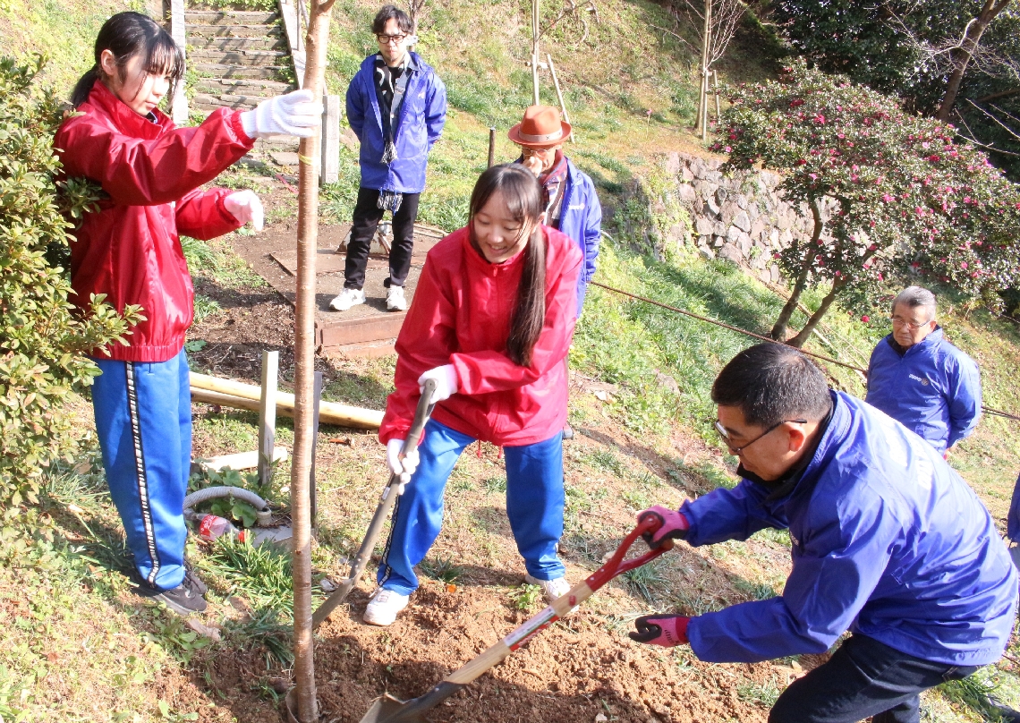別府ケーブルラクテンチで桜の植樹大分東RCと大分商インター...