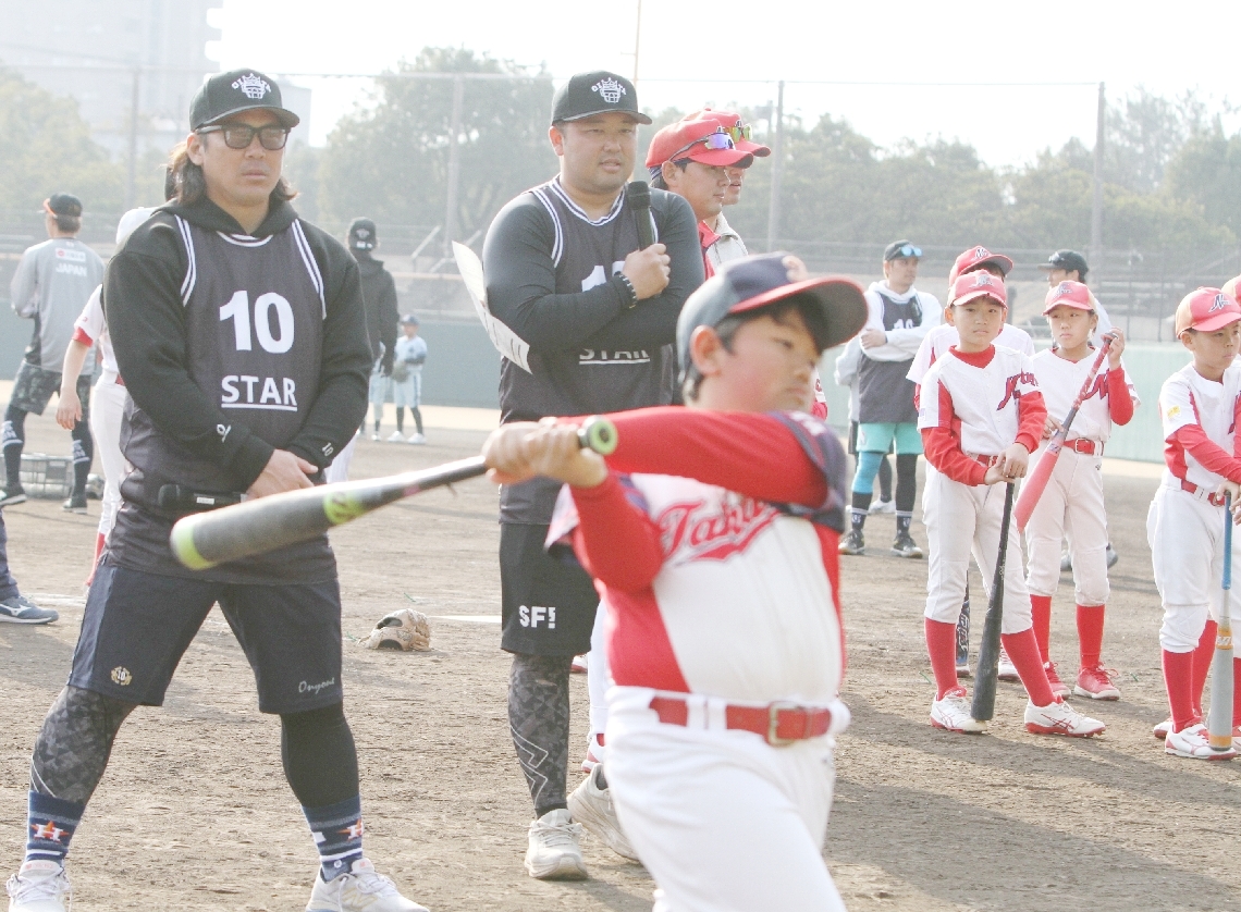 巨人・甲斐拓也捕手らが大分市で野球教室児童と交流しながら...