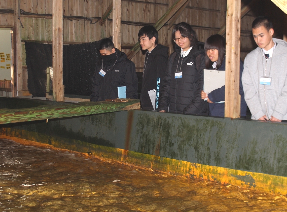 海洋科学高生が津久見市のヒラメ養殖場を見学給餌を体験、光...