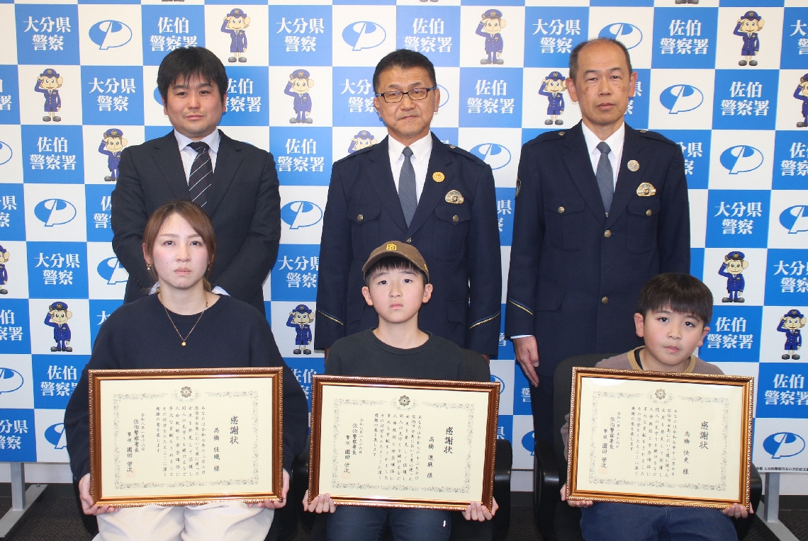 迷子保護に貢献、佐伯市の高橋さん親子に感謝状声かけ通報「...