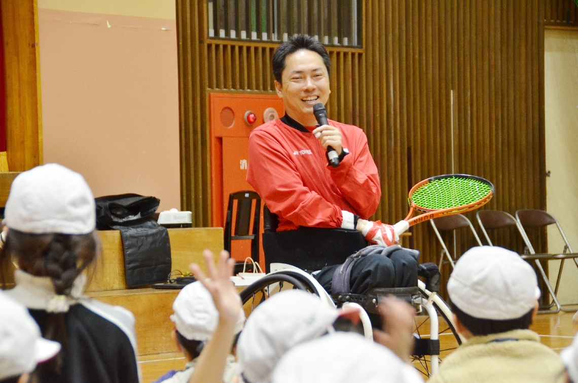 車いすテニスの川野選手が別府市上人小で講演「感謝の気持ち...