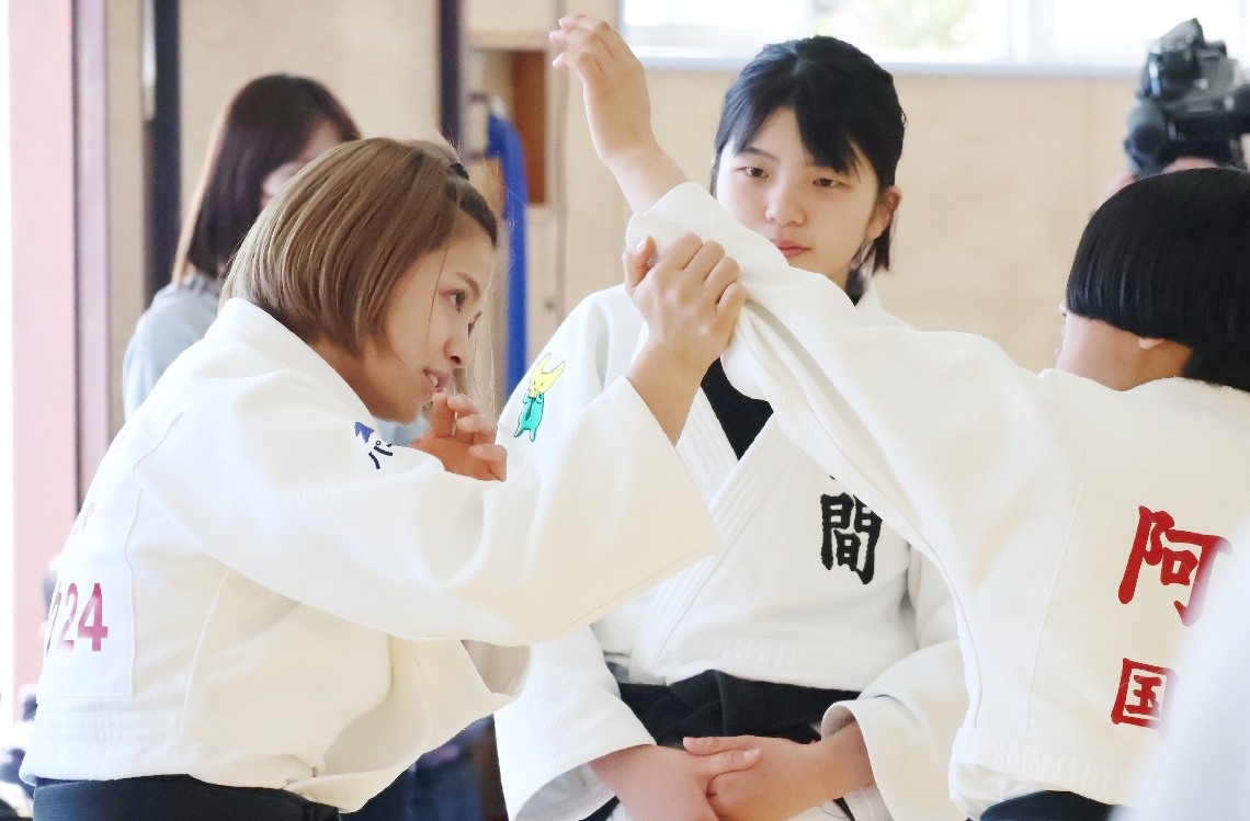 【動画】金メダリストの阿部詩選手が国東高で柔道教室小中学...