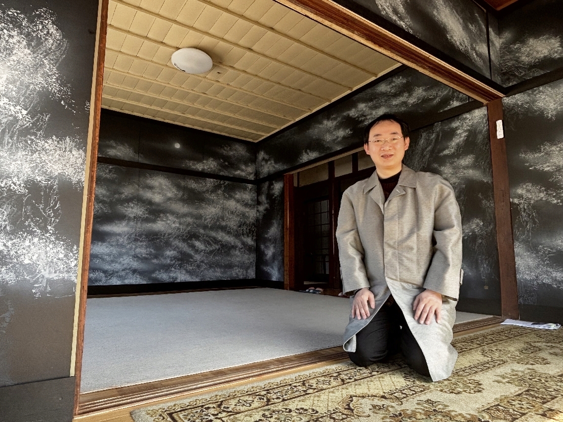 竹田市長湯に沈露露さんの日本画が完成2部屋の壁全体に広が...