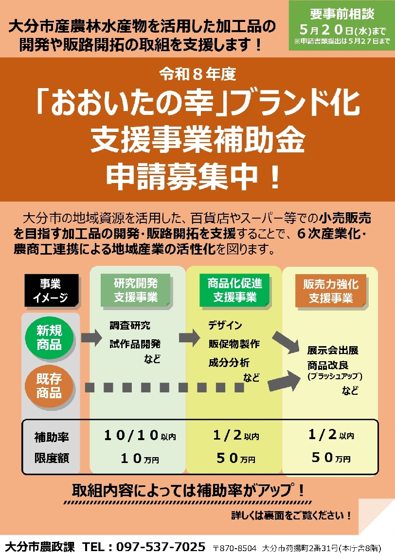 「おおいたの幸」ブランド化支援事業、大分市が補助金申請者...