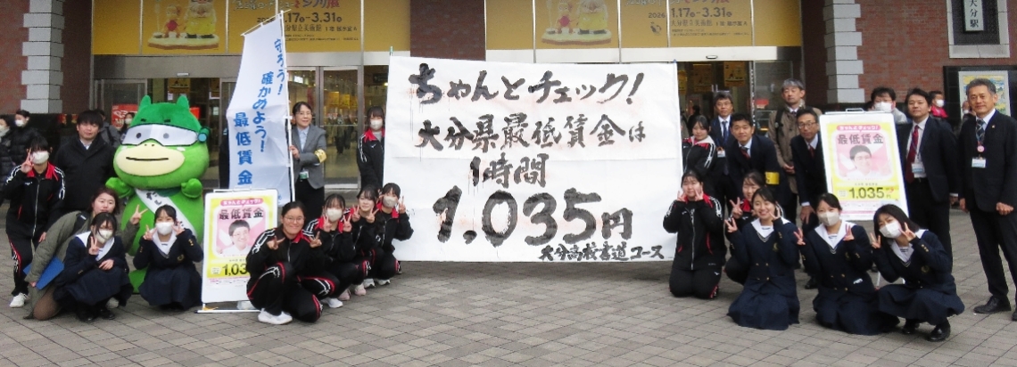 「最低賃金1035円」大分労働局が街頭啓発大分高の生徒による...