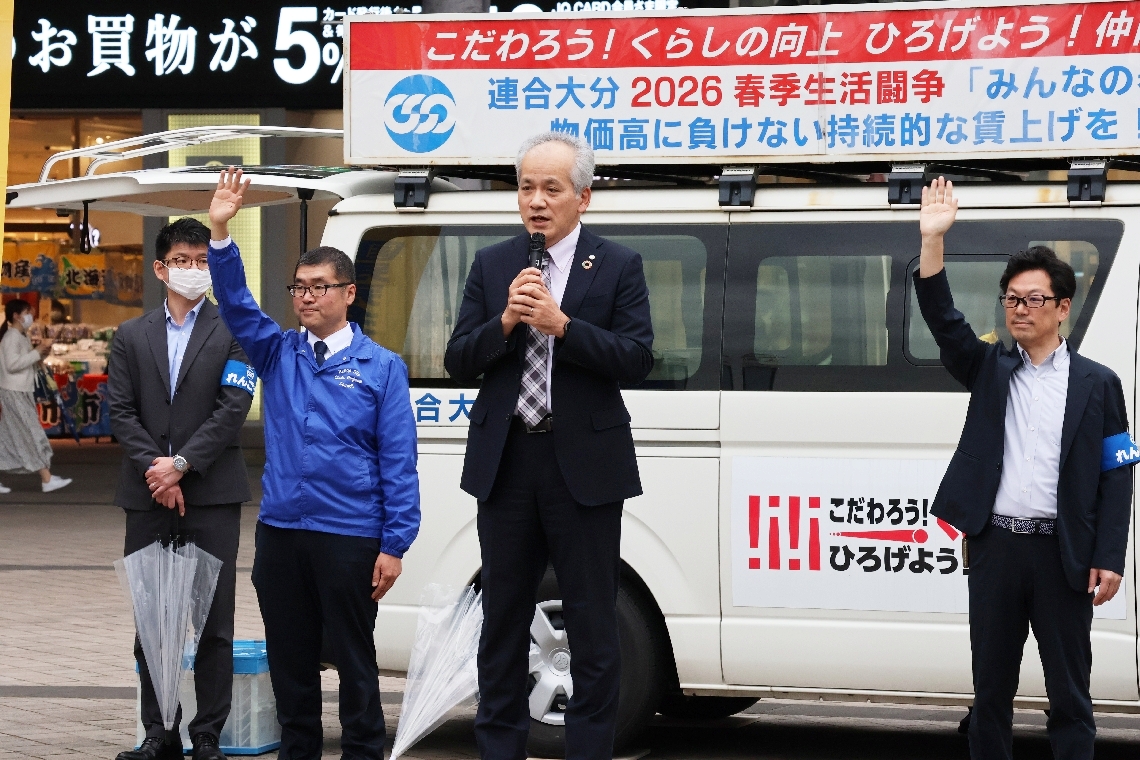 連合大分が賃上げ実現や物価高騰対策を訴え大分駅前で春闘の...