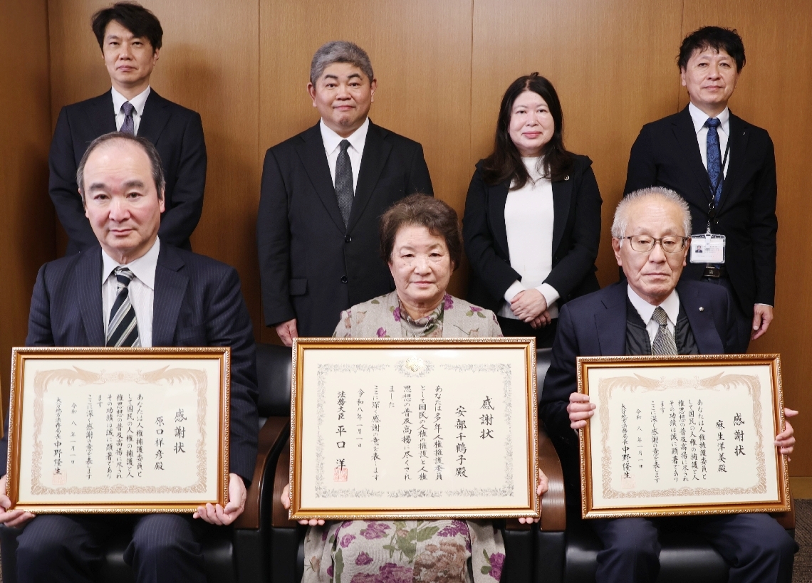 退任した人権擁護委員3人に感謝状大分地方法務局で贈呈式