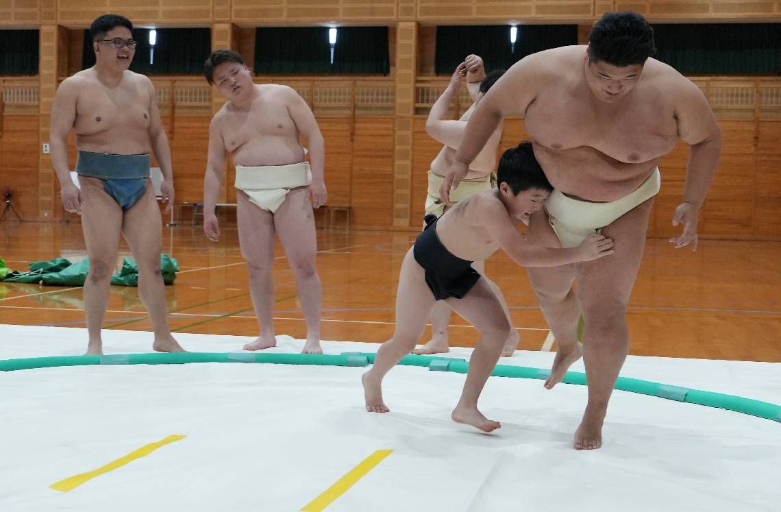 日田市で日体大相撲部が強化合宿学生が県内の子どもたちと交...