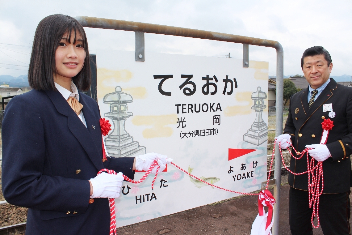 日田林工高卒業生の中野さん、光岡駅の駅名標をデザイン地元...