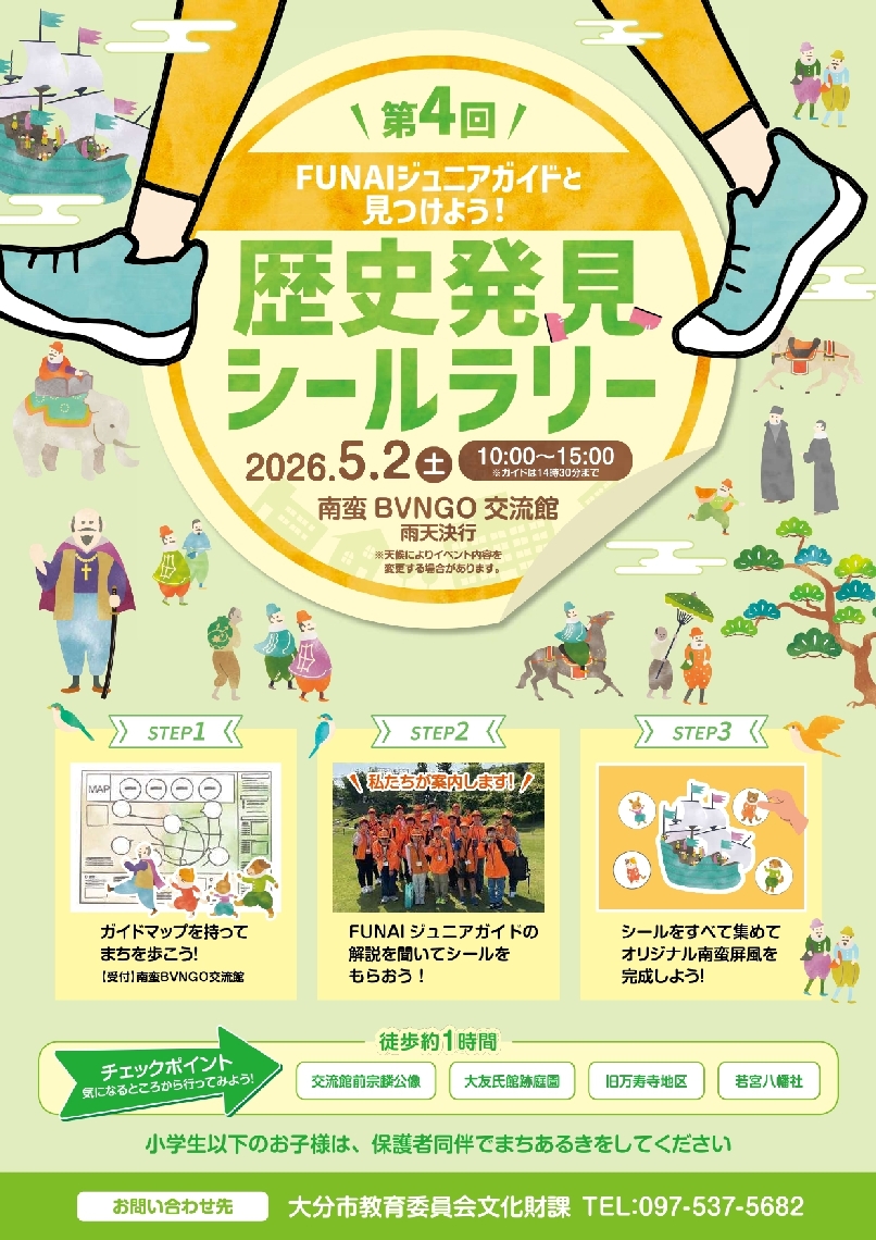大分市で5月2日に歴史発見シールラリージュニアガイドと宗...