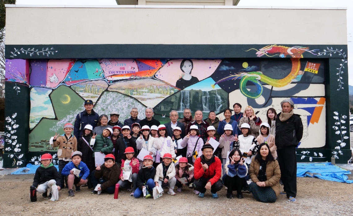 旧野津原中部小の校舎に「地域と生きる壁画」完成アーティス...