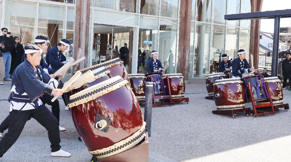 和太鼓団体「三代目源流」が由布院駅前で演奏会全国大会出場...