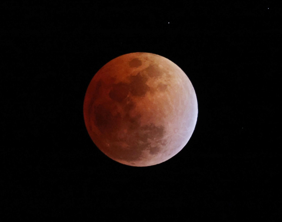 「皆既月食」大分県内で観測地球の影にすっぽり、赤黒く輝く