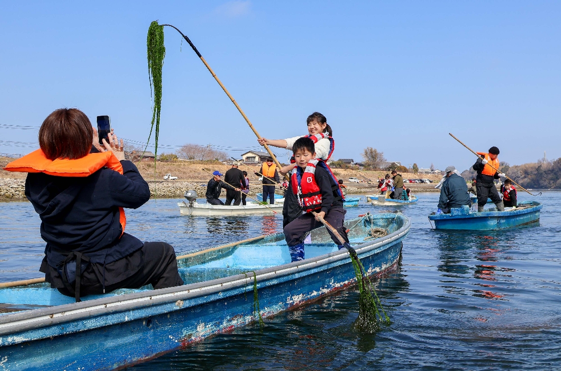 宇佐市の駅館川でアオノリ漁の体験会13組32人が参加「取れた...