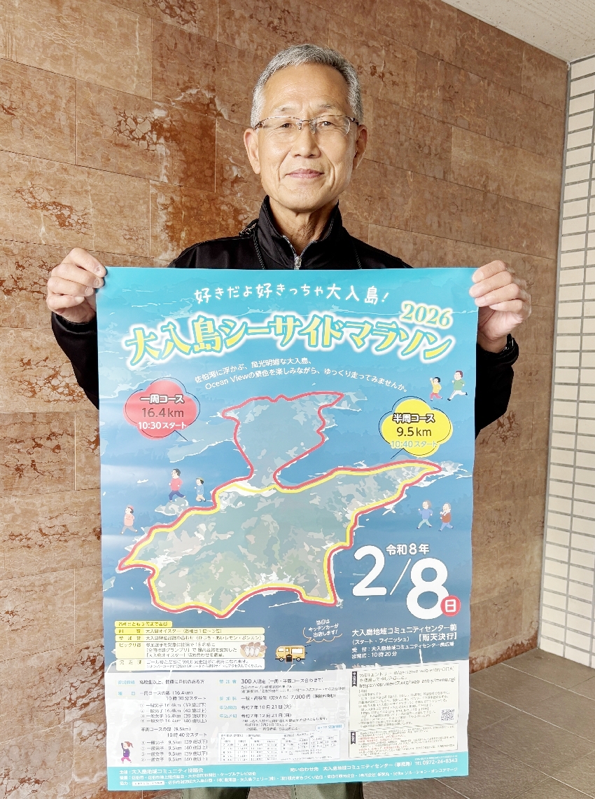 来年2月8日に「大入島シーサイドマラソン」島内一周と半周...