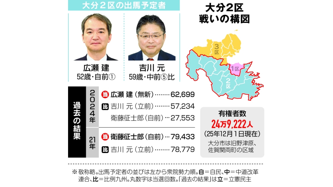 【混沌衆院選】大分2区自民と中道の一騎打ち、保守一本化で...