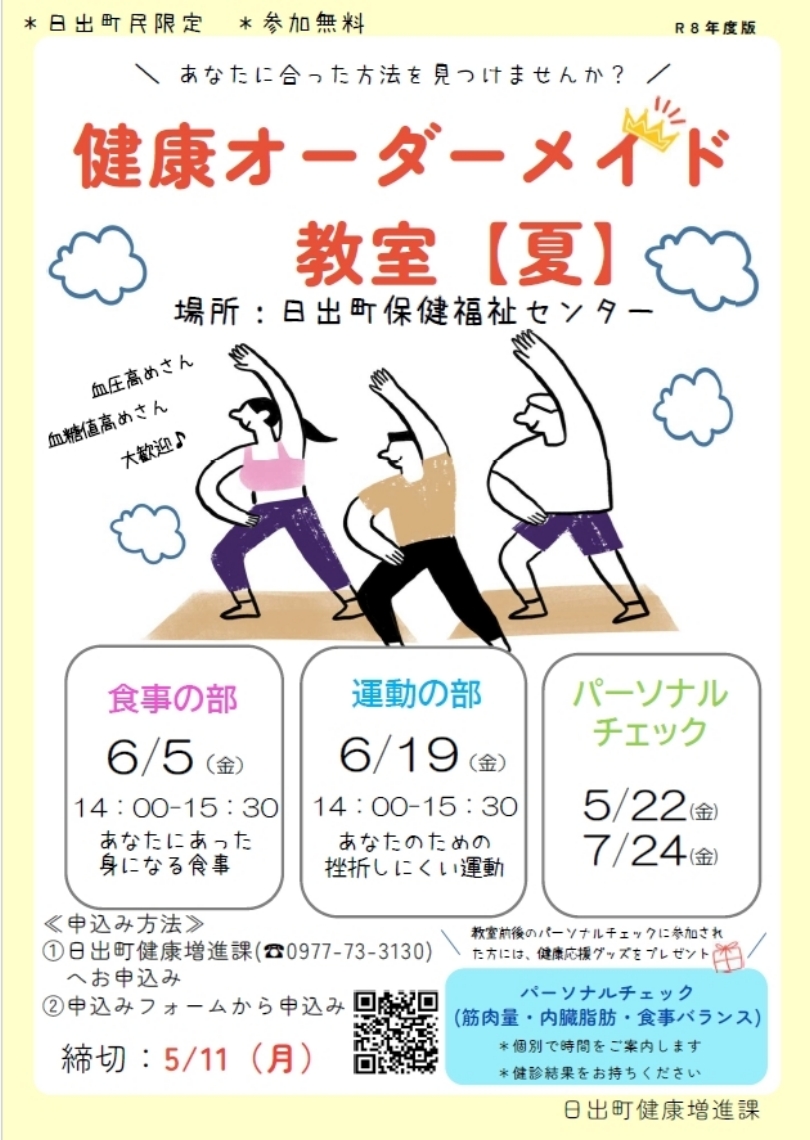 日出町が5月22日から健康オーダーメイド教室11日まで参加者...