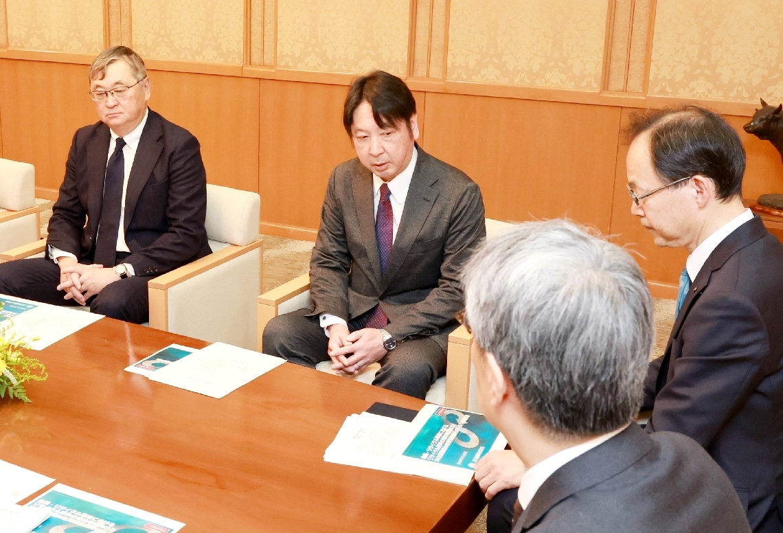 県内に支部がある日本旅行業協会の広原武史県支部長(53)と、全国旅行業協会の高寄和弘大分支部長(69)ら関係者が県庁を訪れた。