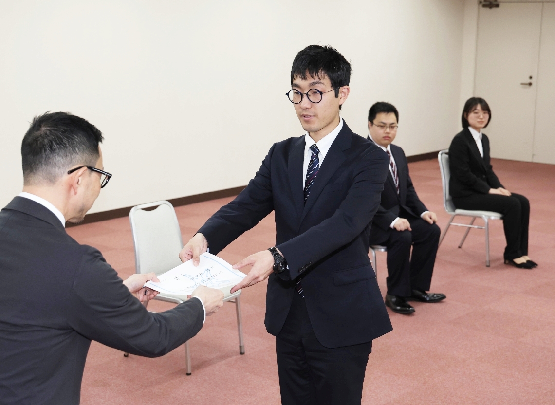 大分合同新聞社で入社式新入社員3人「多様な視点を大切にし...