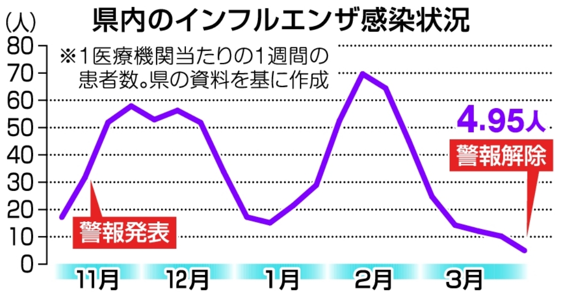大分県がインフルエンザ「警報」を解除1医療機関当たりの患...