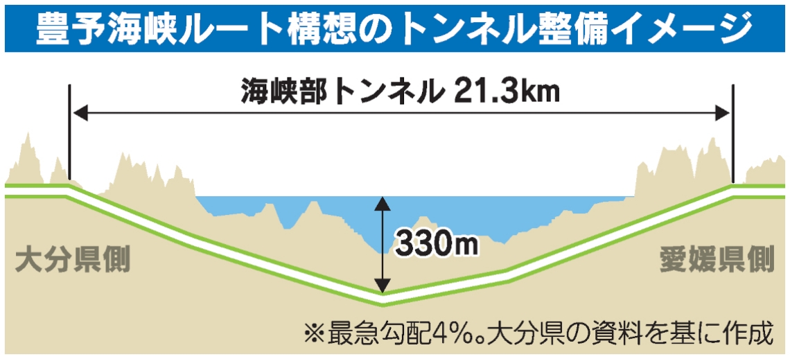 豊予海峡ルートの事業費1.5兆円、大分県が試算公表海底トン...