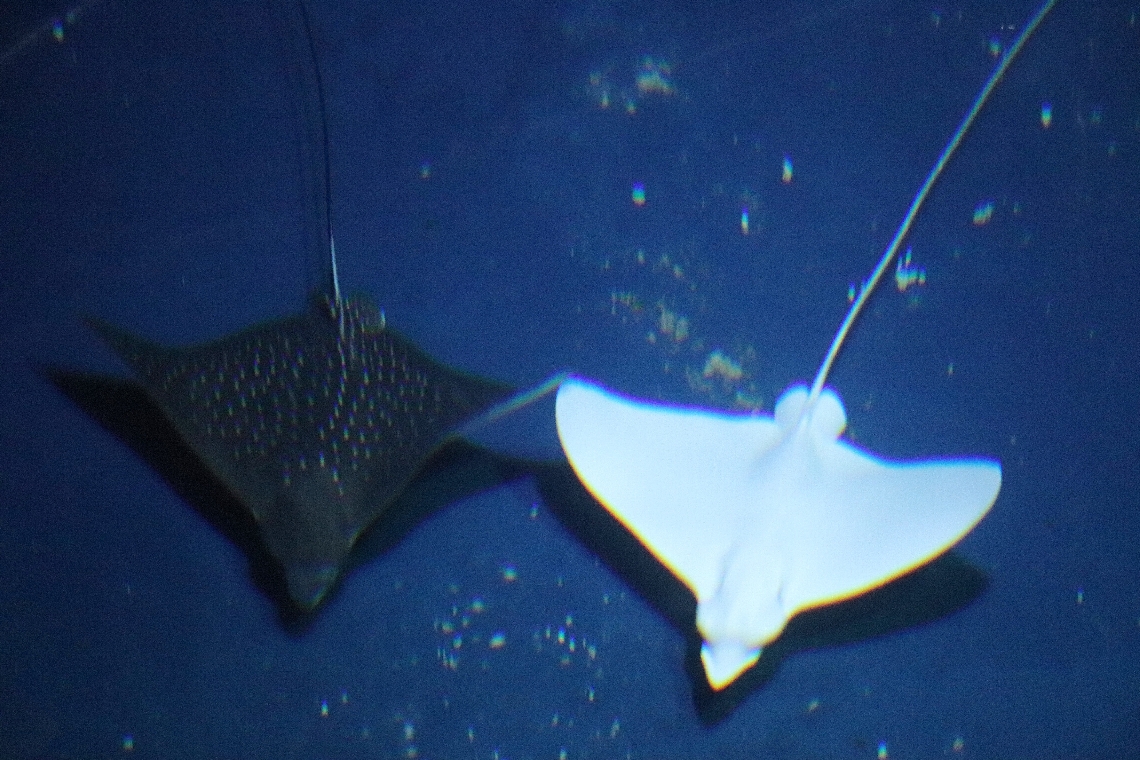 「鳥みたい」うみたまごに白色マダラトビエイ登場通常は背面...