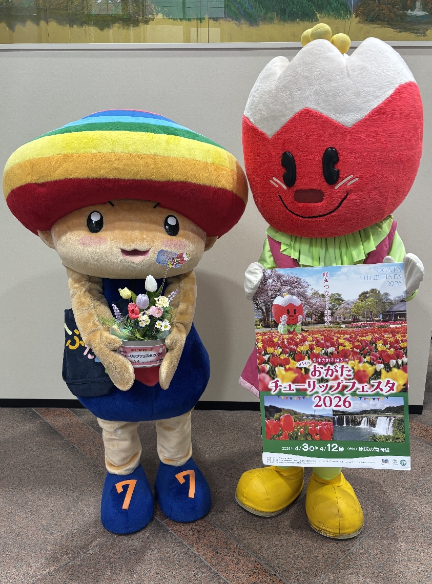 おがたチューリップフェスPR隊、大分合同新聞社を訪問19万本...