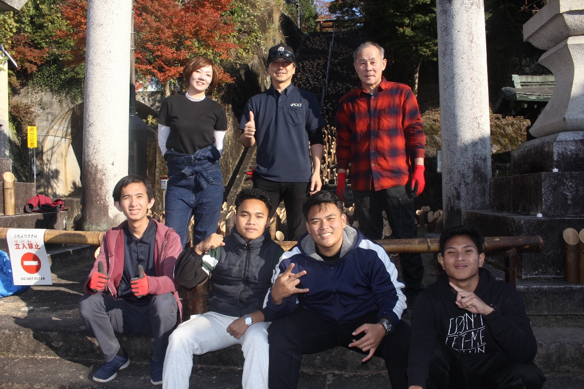 大阪市での贈呈式にいつもの白衣姿で出席した大分圏清掃整理促進運動会のメンバー10人は翌朝、サントリー文化財団のトイレに向かう。