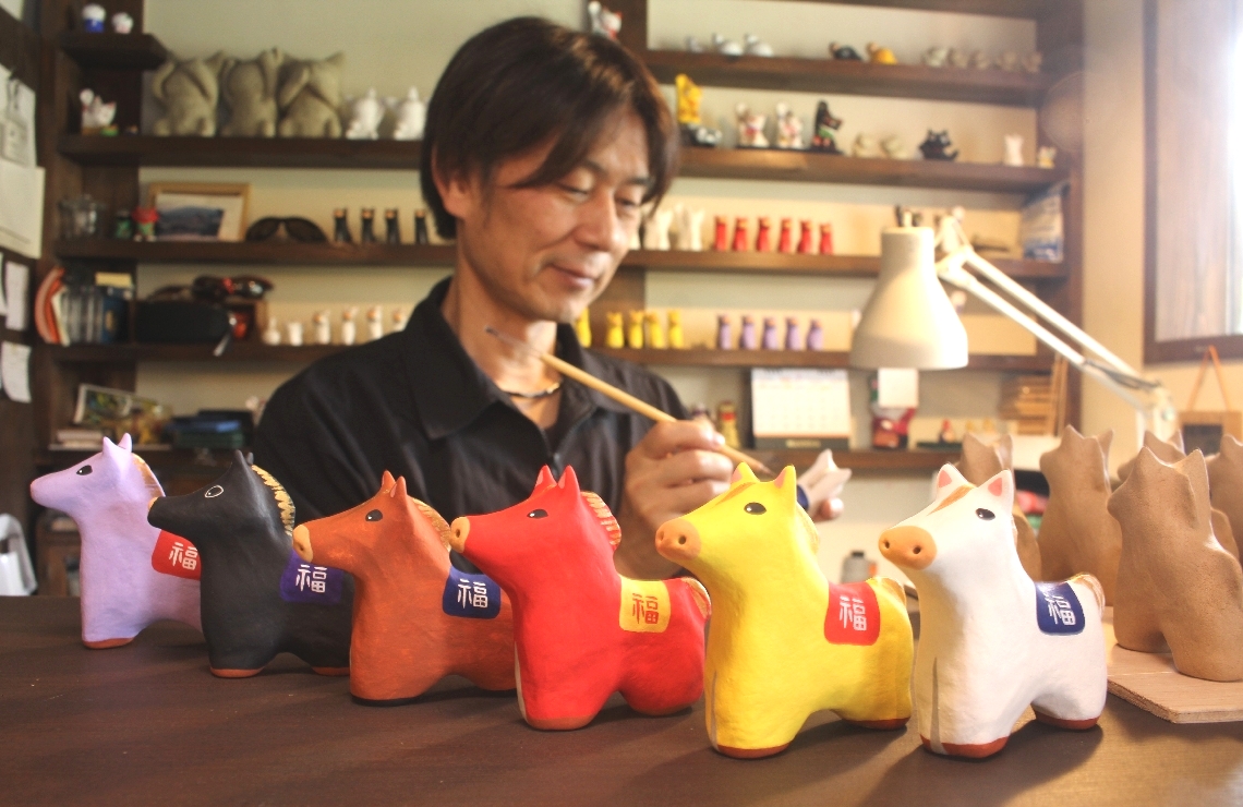 来年がウマくいくように干支の置物、竹田市の工房で製作進む