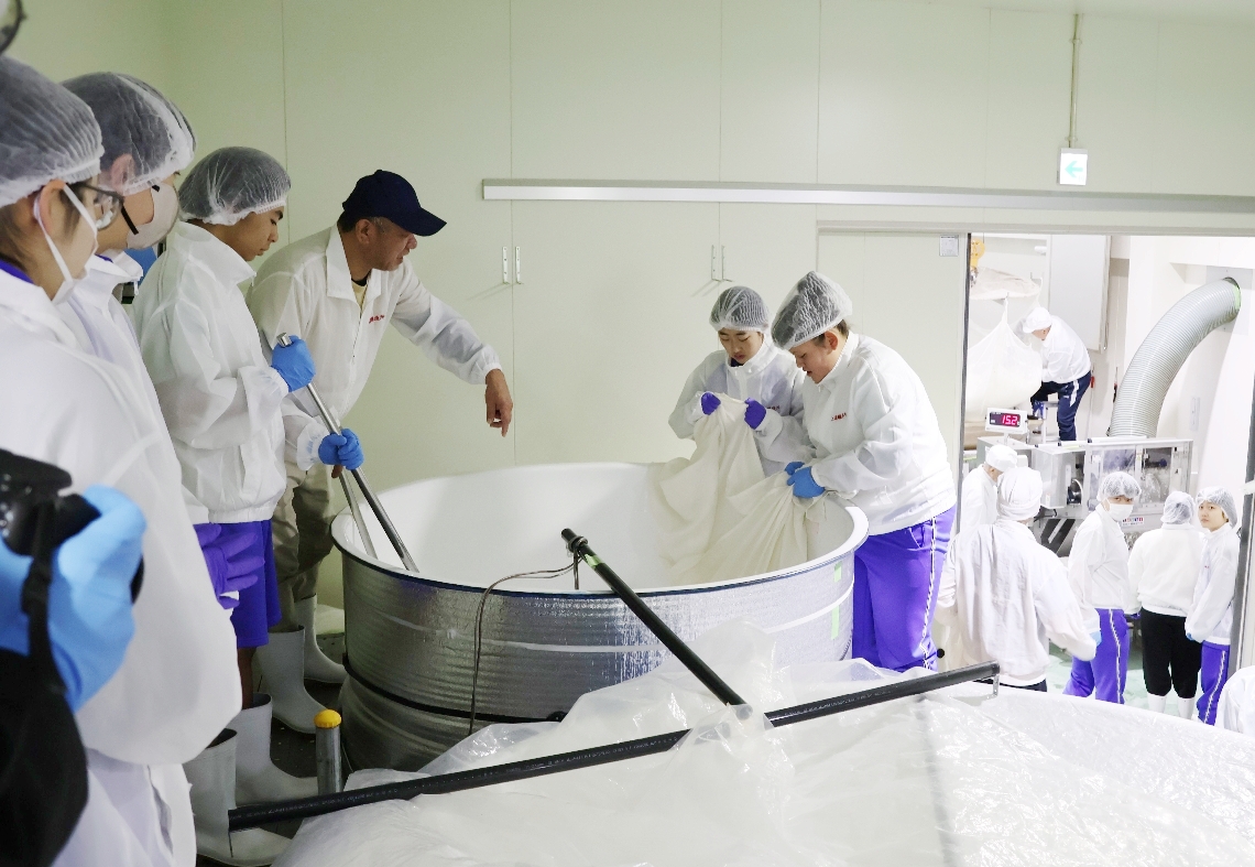 佐伯市の大地酒造で中学生が日本酒造り体験仲仕込みに挑戦、...