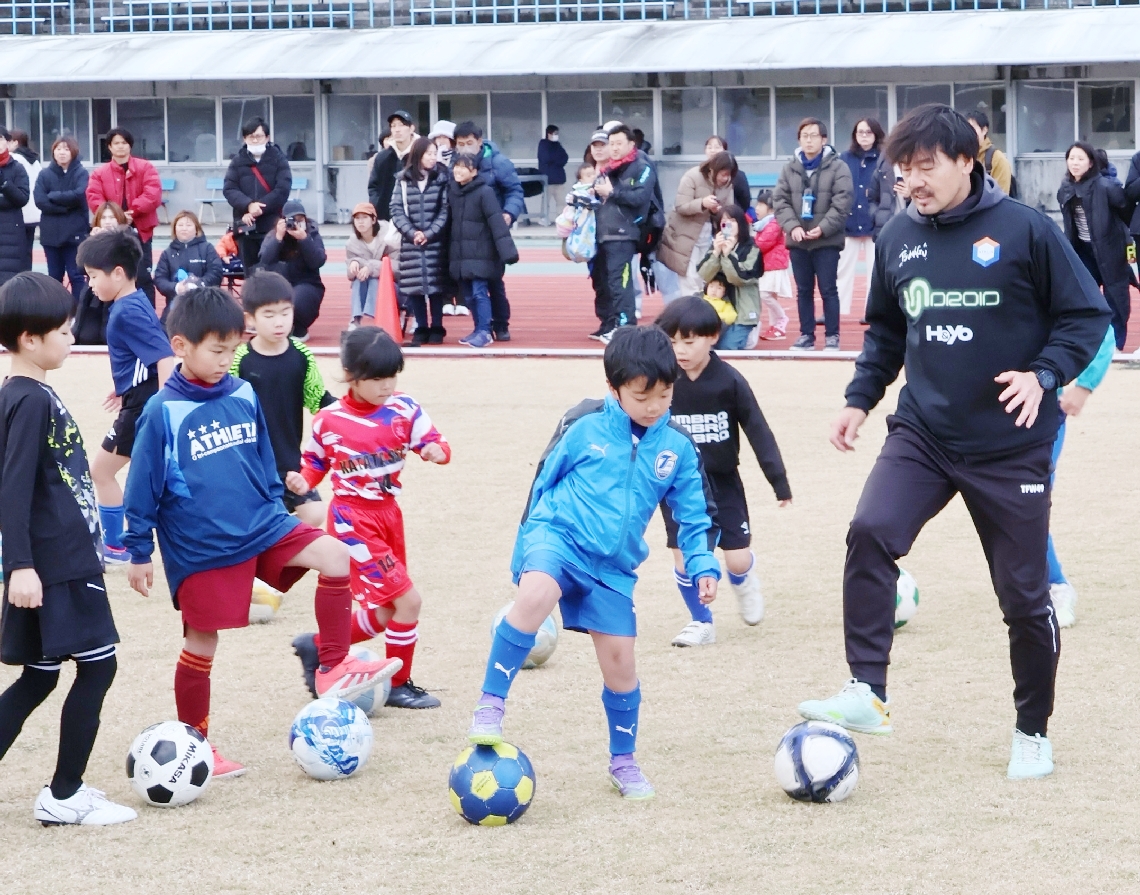 佐伯市でサッカー教室松井大輔さんと金崎夢生さん、仁部屋和...