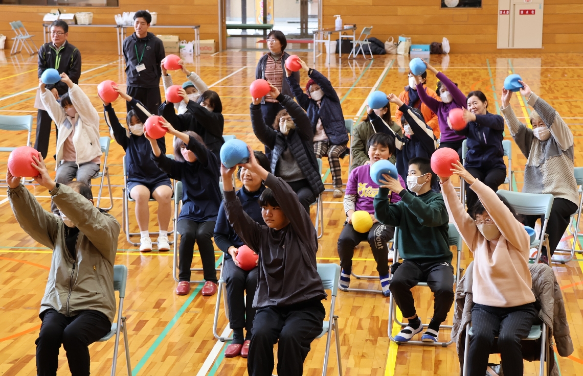佐伯市本匠で健康体操教室、地元児童生徒も参加運動や読み聞...