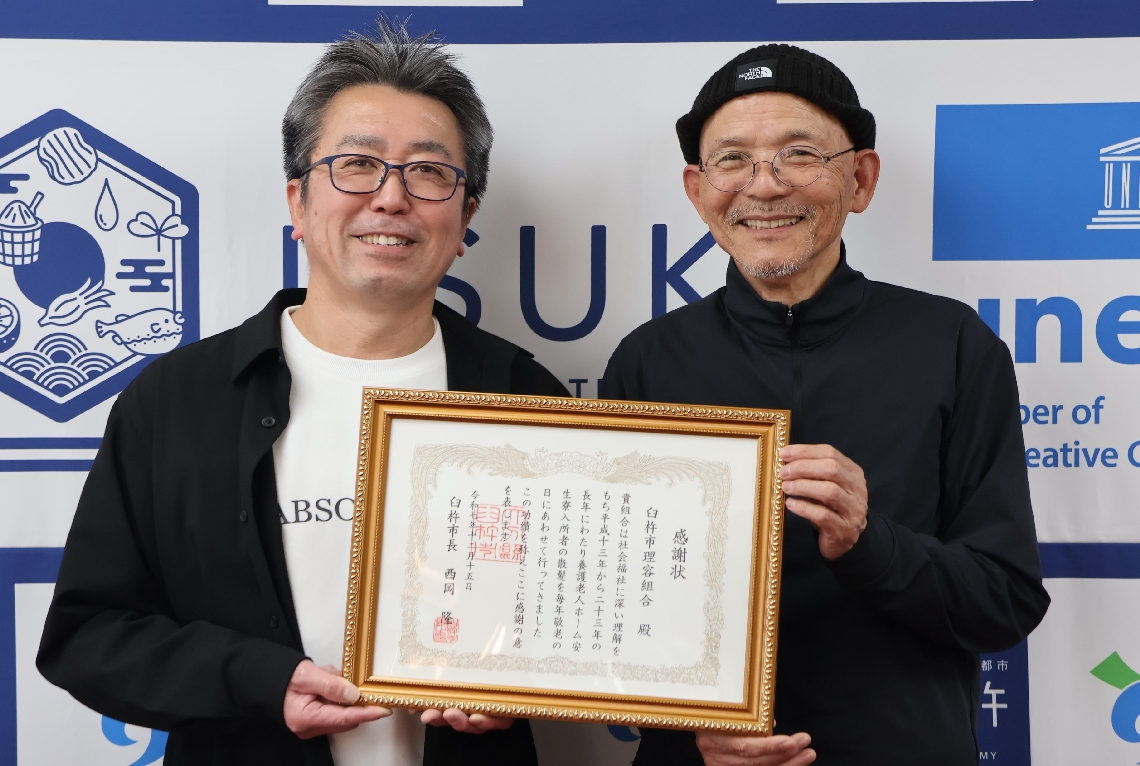 臼杵市理容組合に市が感謝状23年間ホーム入居者に無償でカッ...