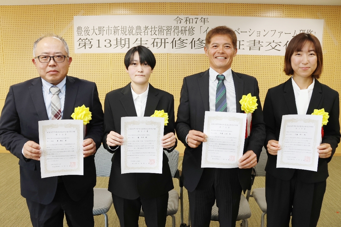 豊後大野市インキュベーションファームの研修修了証書交付式...