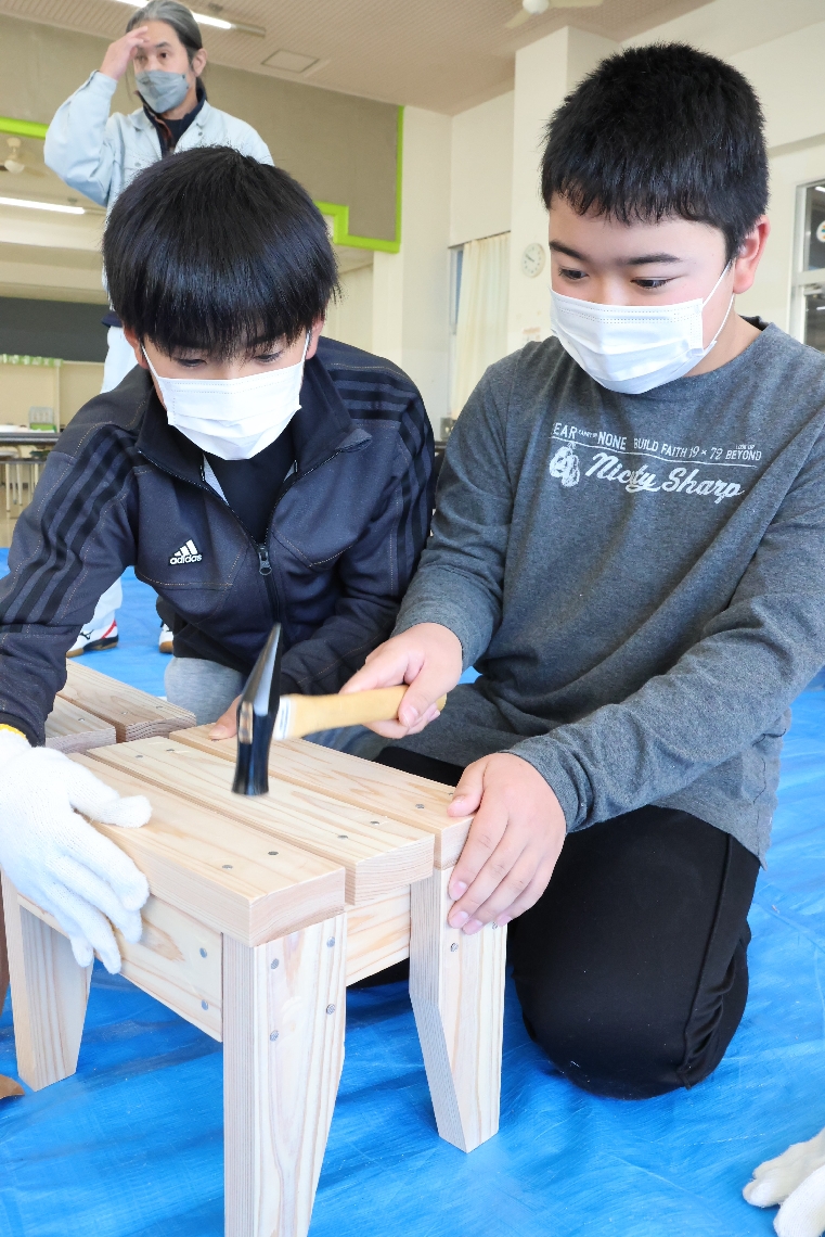 大野小中5年生が木工教室で踏み台作りに挑戦林業学ぶ授業「...