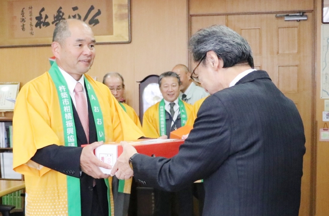 杵築市のハウス美娘とハウスデコポン、品質上々生産者が市長...